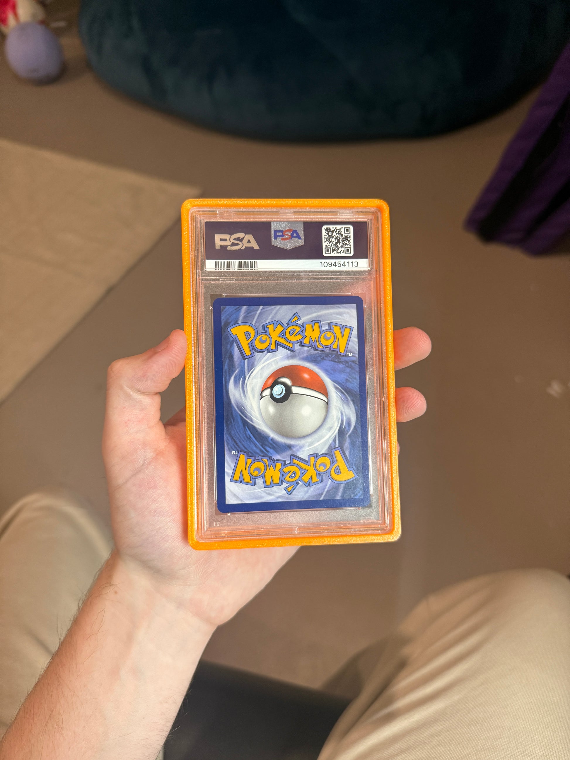 This prism orange PSA cardguard is 3D printed with PLA and enhances the look of your graded slab!