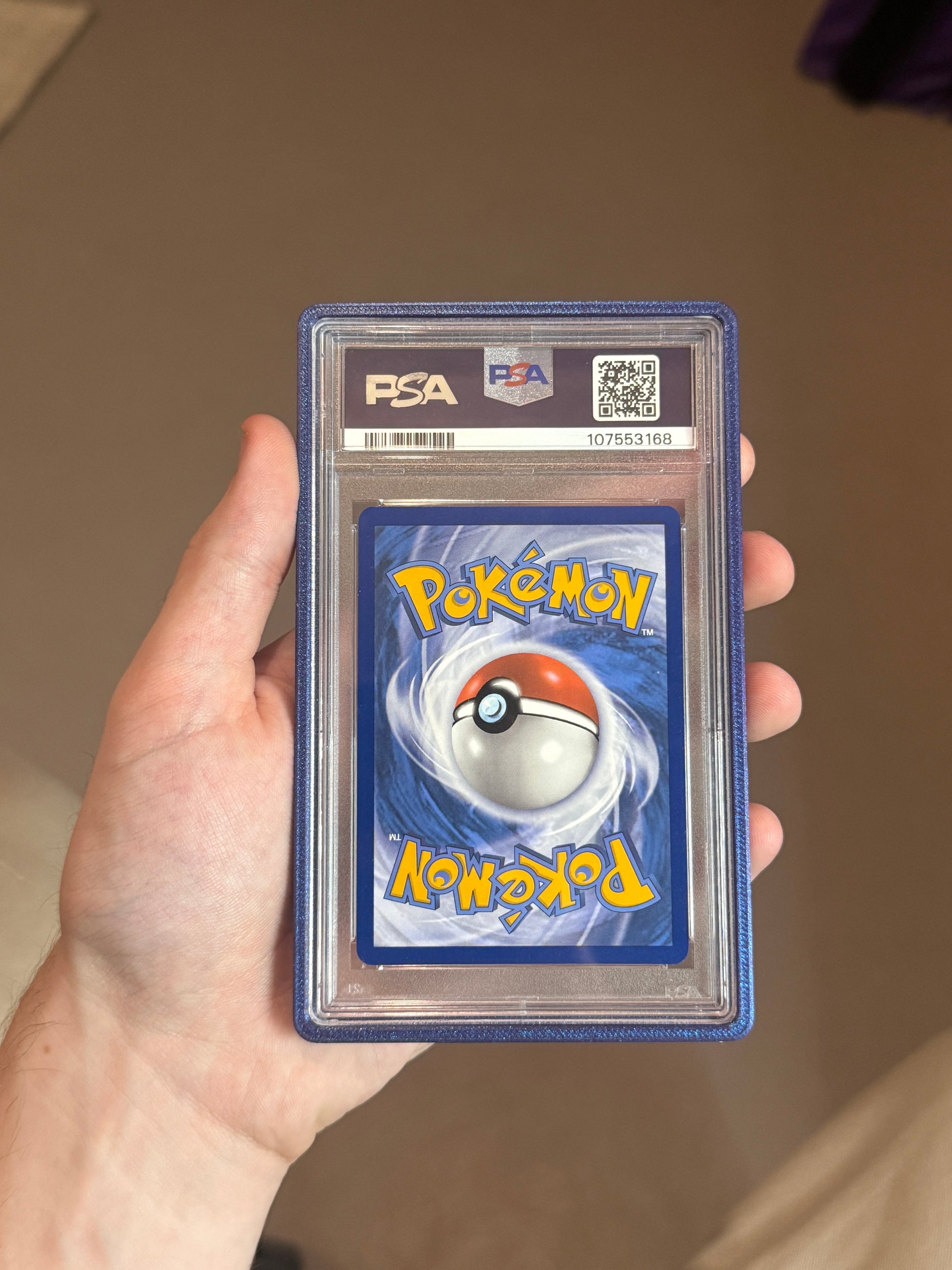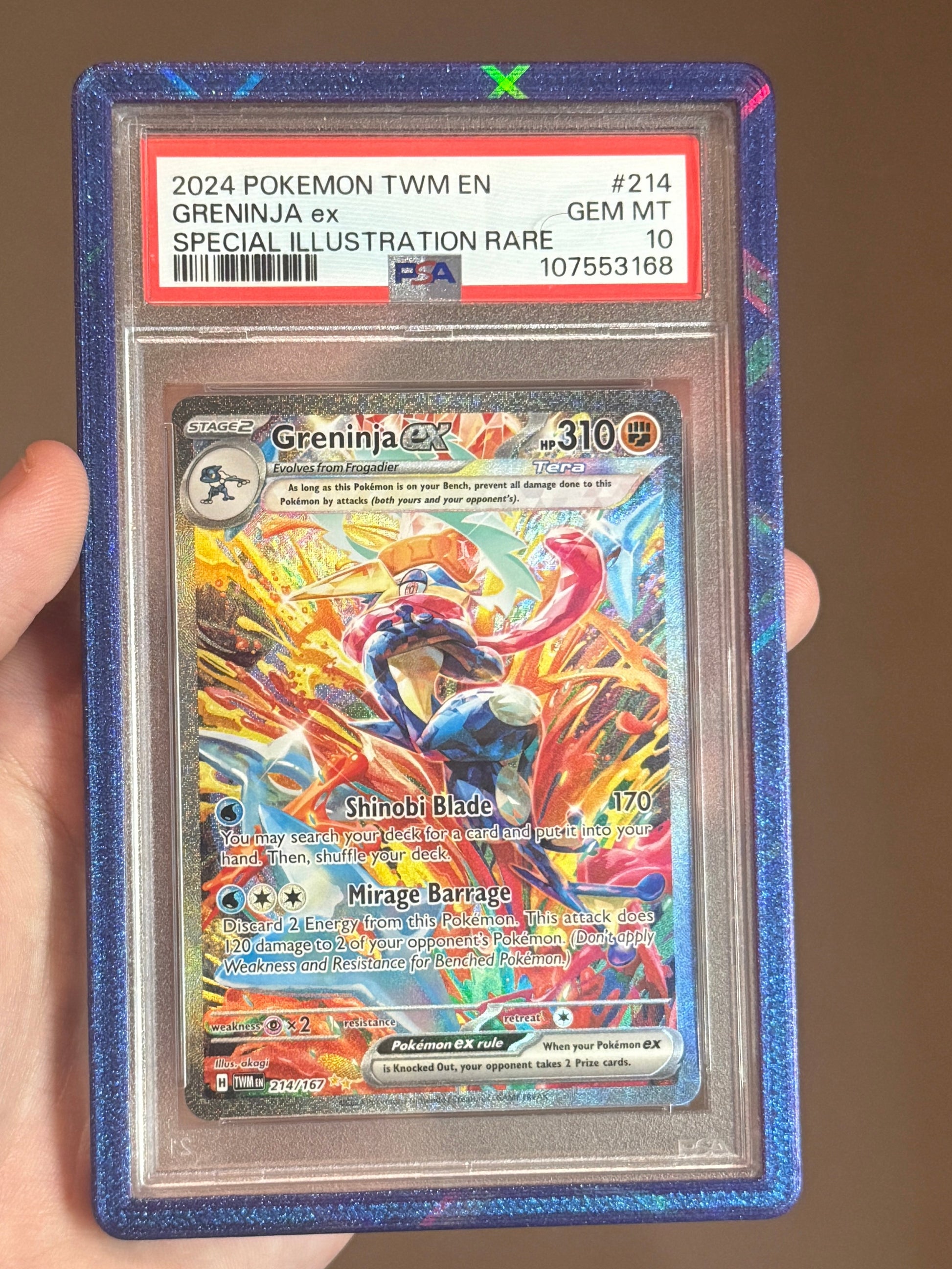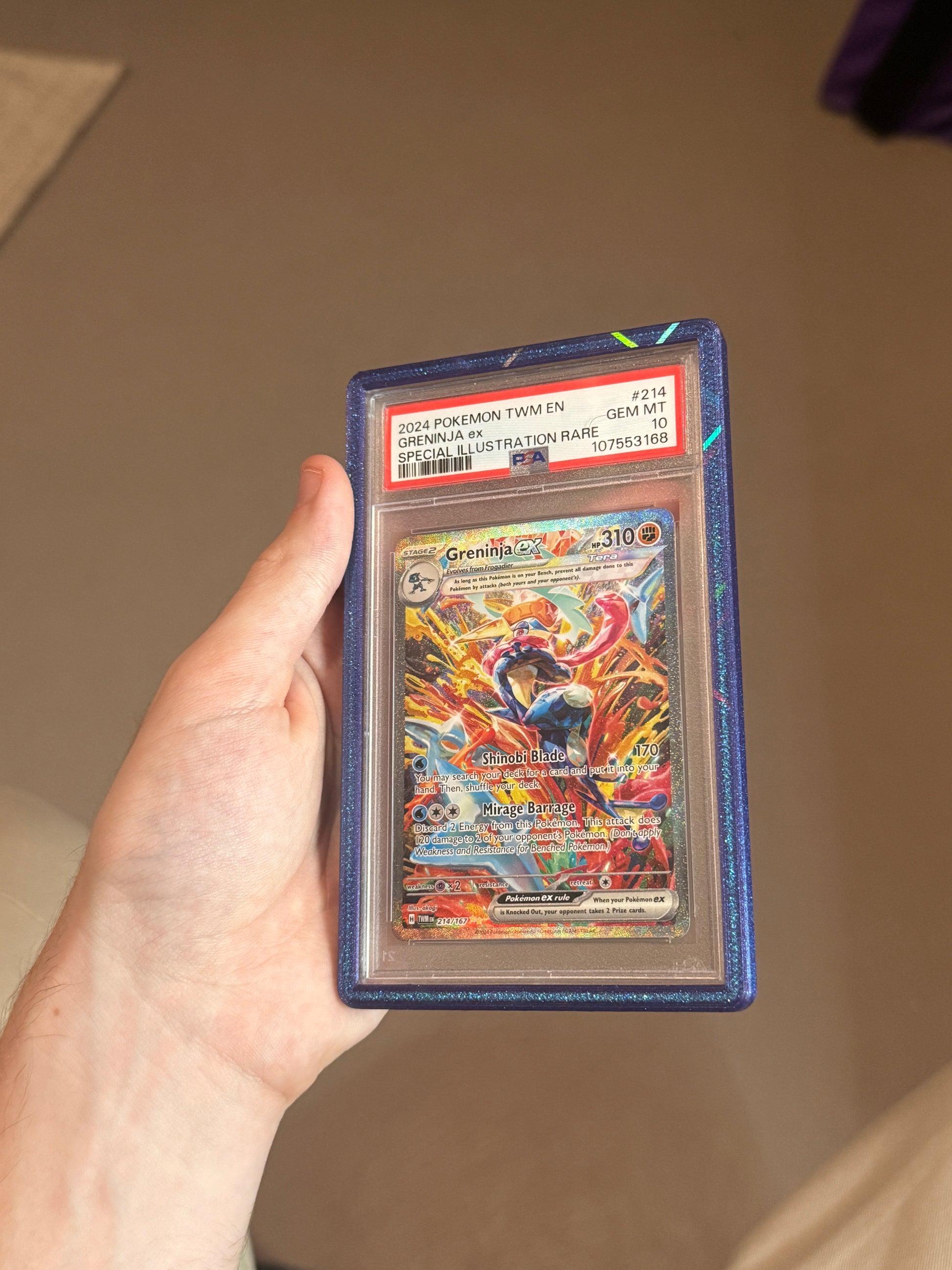 This prism dark blue PSA cardguard is 3D printed with PLA and enhances the look of your graded slab!