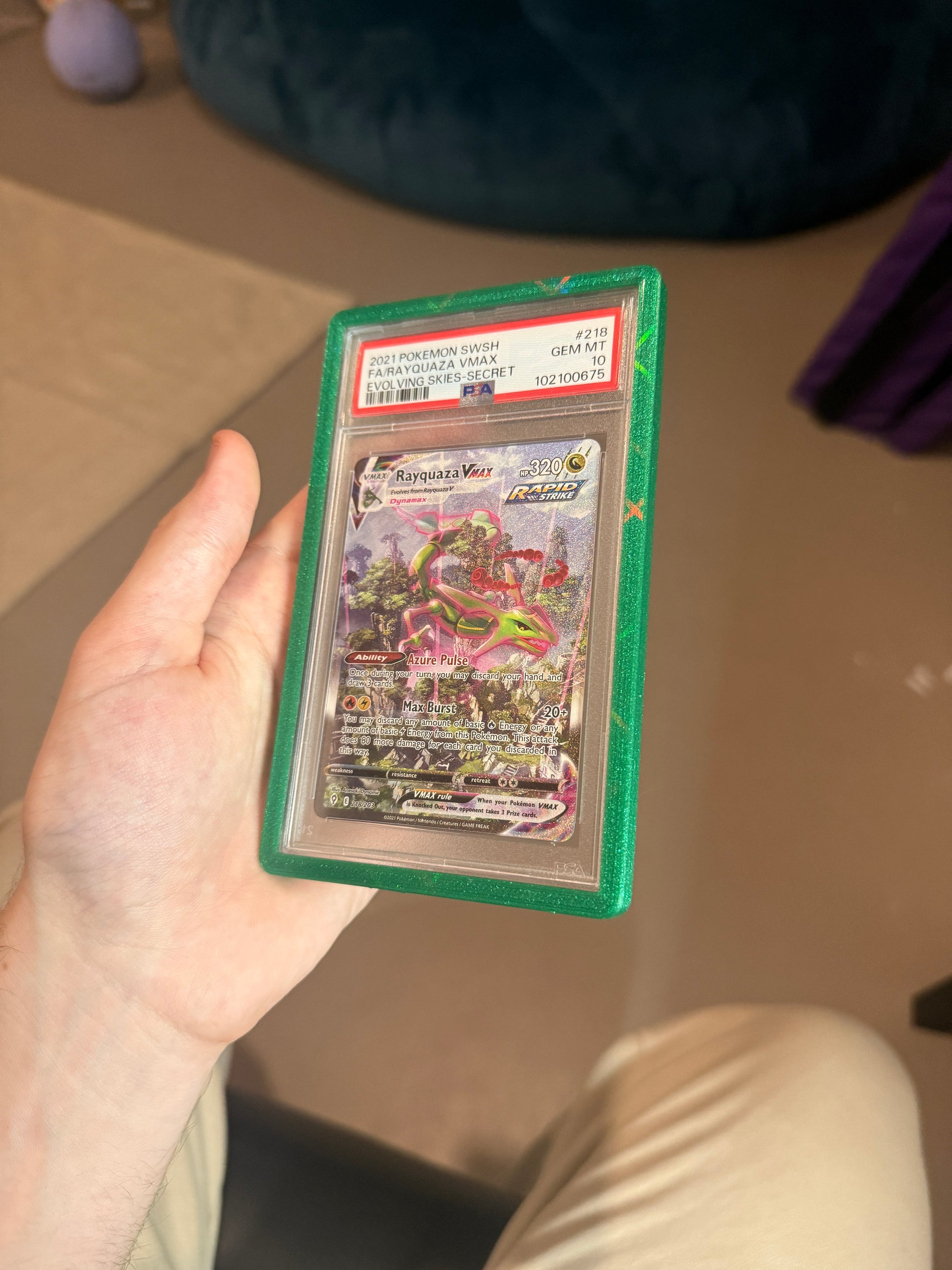 This prism green PSA cardguard is 3D printed with PLA and enhances the look of your graded slab!