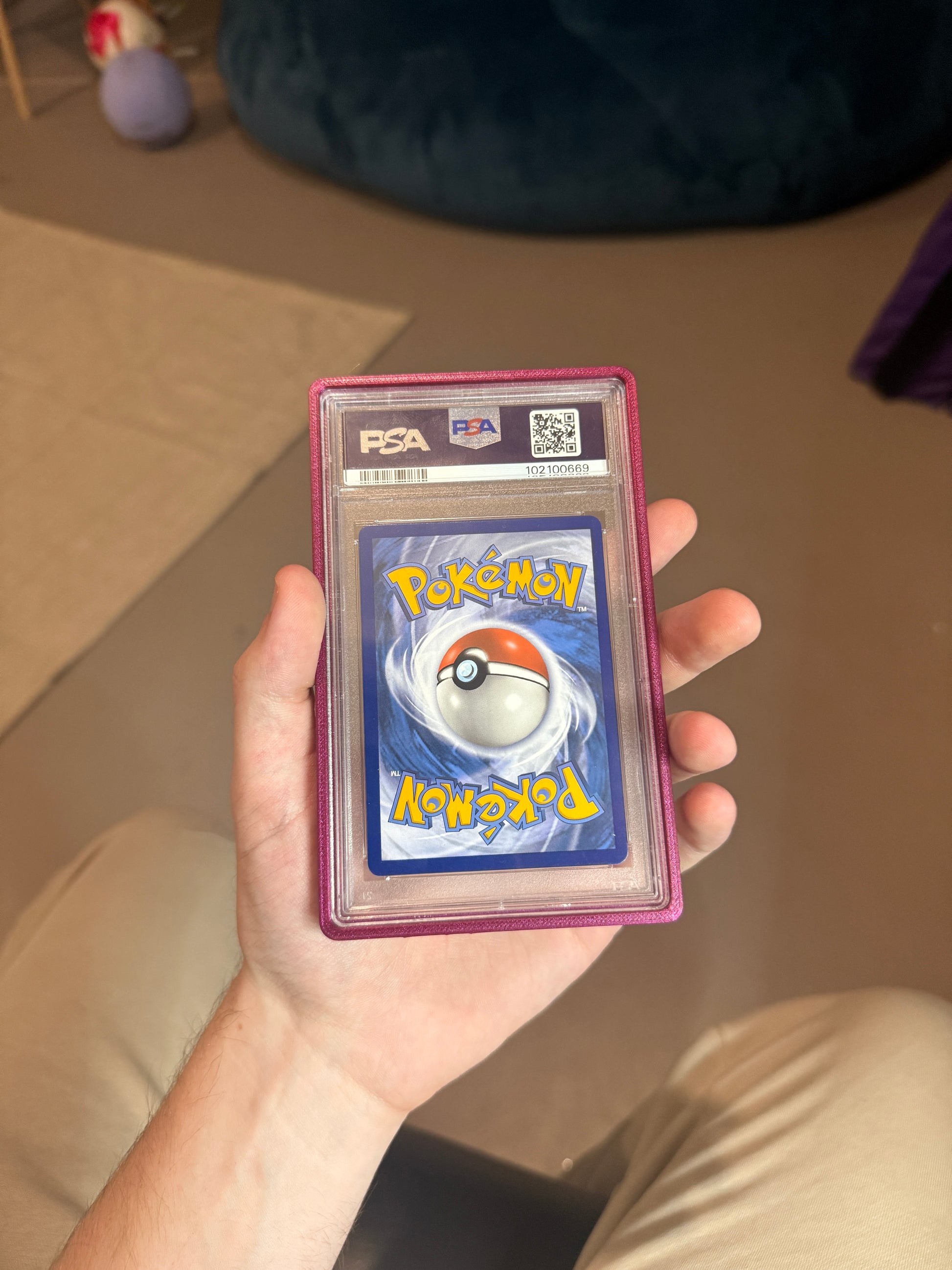 This prism magenta PSA cardguard is 3D printed with PLA and enhances the look of your graded slab!
