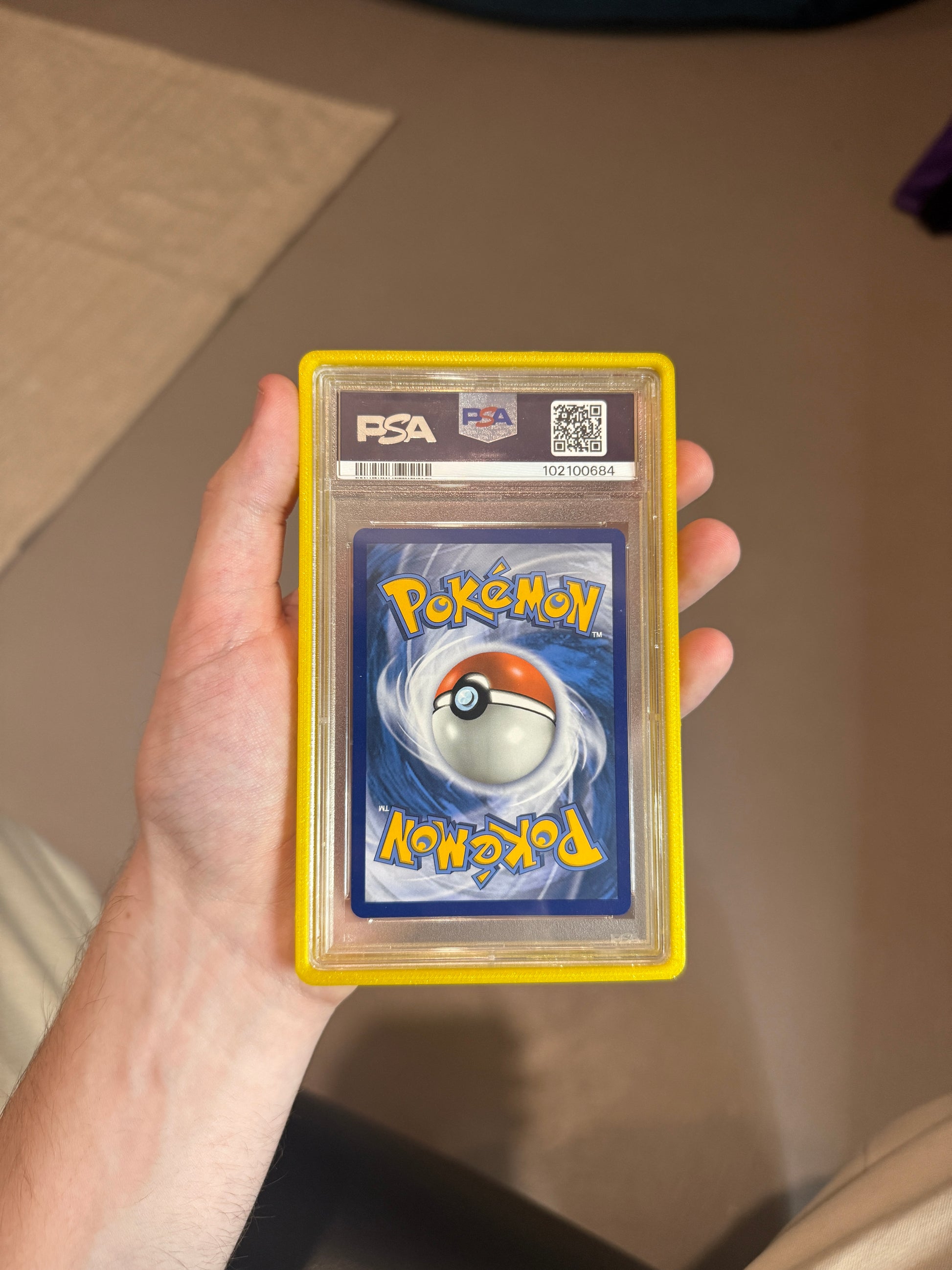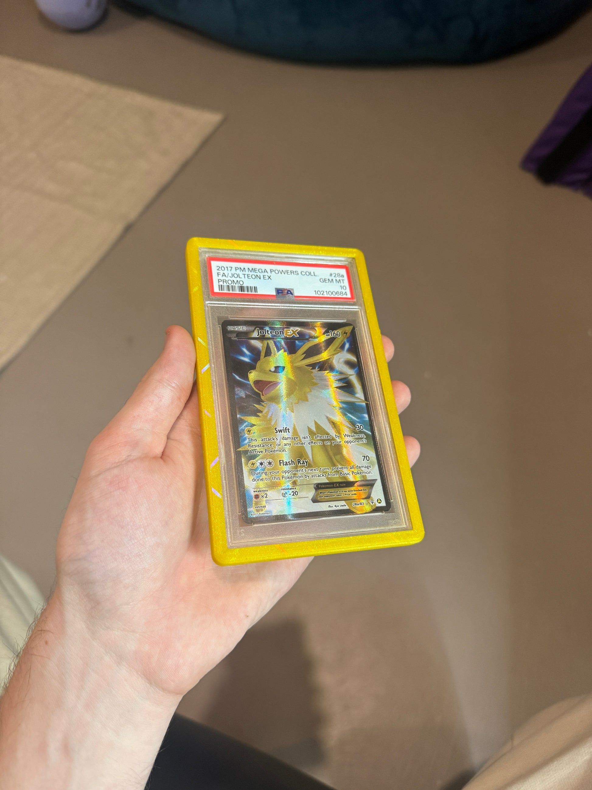 This prism orange PSA cardguard is 3D printed with PLA and enhances the look of your graded slab!